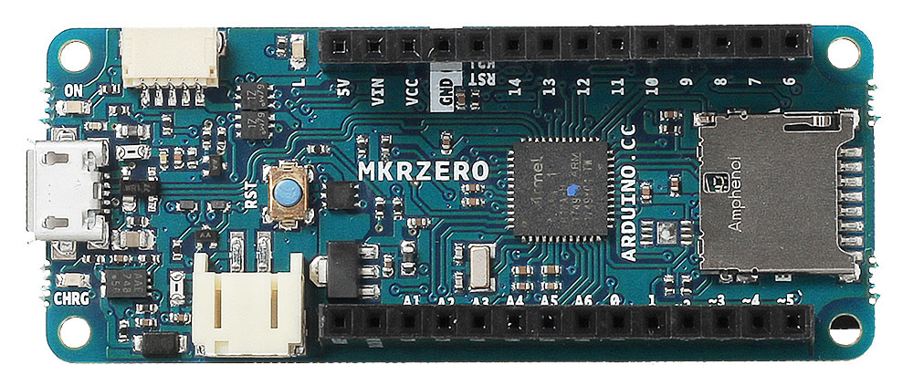 Arduino MKR Zero выполнена на 32-битном ARM-процессоре ATSAMD21G18 компании Microchip с вычислительным ядром Cortex® M0+.