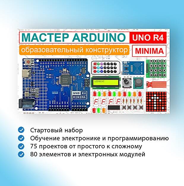 Образовательный конструктор Мастер Arduino UNO R4 Minima предназначен для школьников, студентов и их продвинутых родителей.