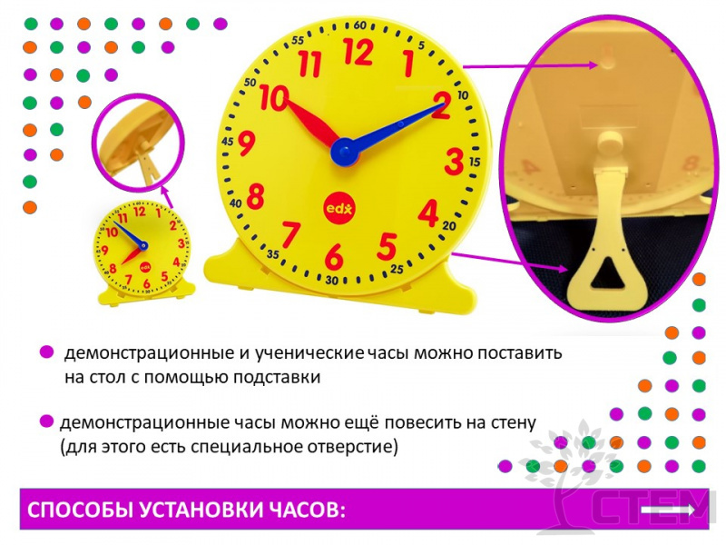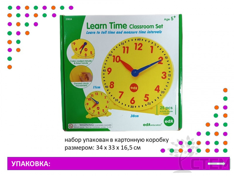 Набор часов (12-ти часовой формат) - поможет детям научиться определять время по часам со стрелками и понимать временные интервалы.