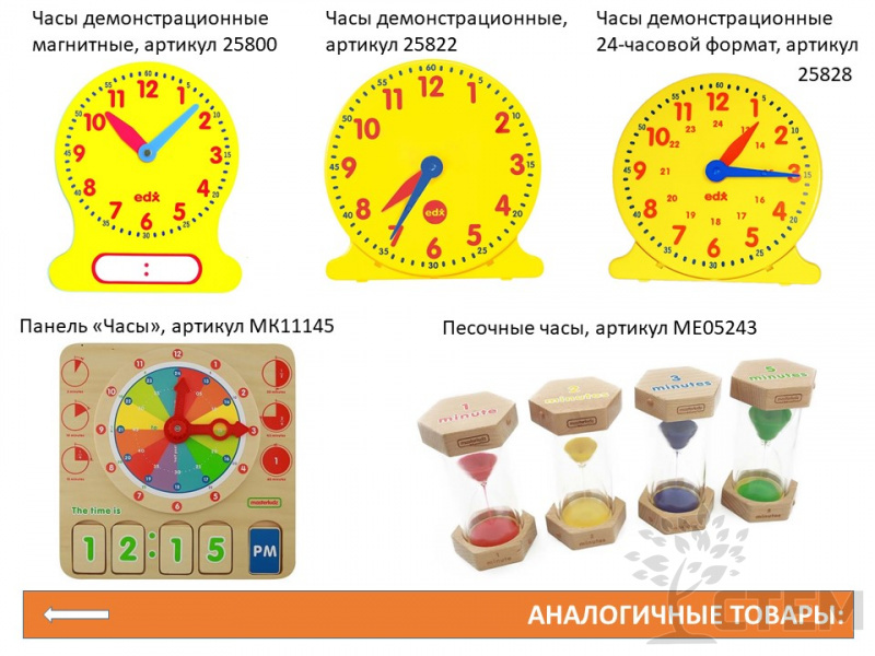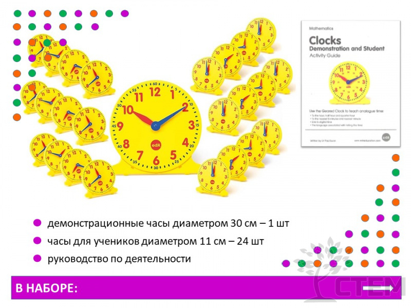 - демонстрационные часы диаметром 30 см - 1 шт,