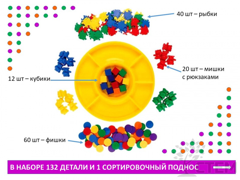 Счет и сортировка. Набор малый (132 дет.) – идеальный инструмент для развития математических навыков у детей. Увлекательные задания помогут освоить основы счета и классификации, стимулируя интерес к обучению. Подходит для индивидуальных и групповых занятий в детских садах и начальной школе.