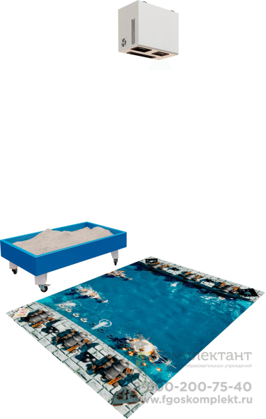 Комплект поставки:Проектор, Сенсор глубины, Компьютер, ОС: Windows, Wi-Fi модуль, Резервуар песочницы, Планшет, ПО песочница, ПО, Методическое пособие, Коробка с ключами и болтами, Техническая документация.