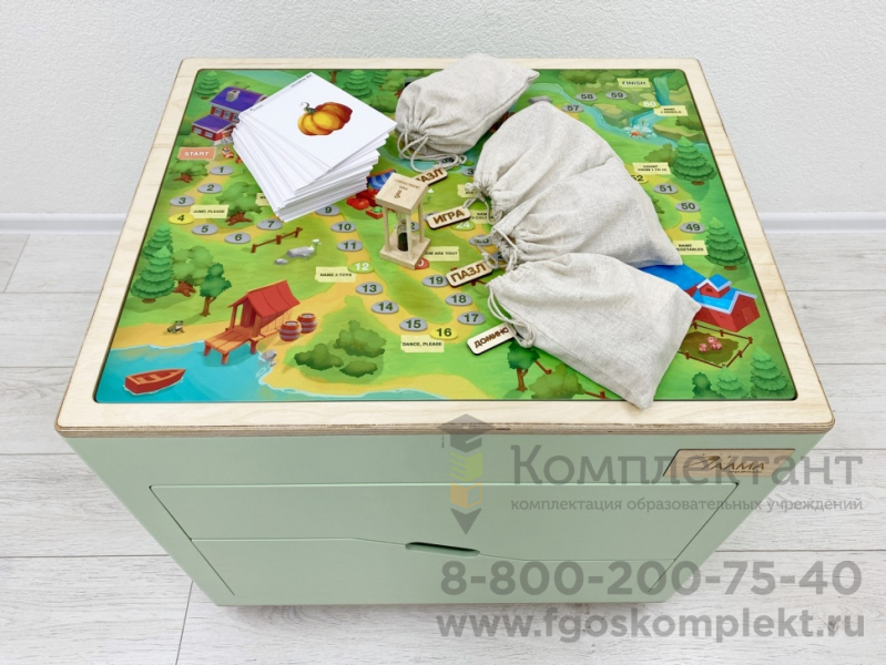 Универсальный методический комплекс по изучению английского языка, рассчитанный на детей дошкольного возраста. Содержит красочно оформленную интерактивную панель с профильным программным обеспечением, мобильный куб для хранения игр и пособий, настольные игры, дидактические карточки. Отлично подойдёт для создания кружка английского языка на базе ДОУ, центра раннего развития, языкового центра.