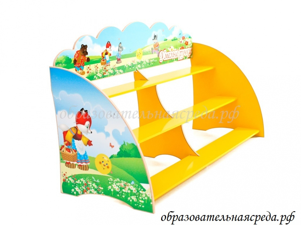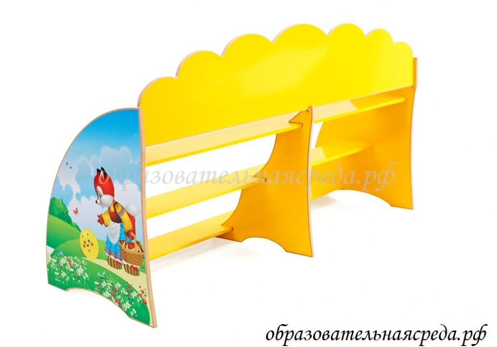 Полочка предназначена для демонстрации творческих работ детей и выполнена с нанесением полноцветного, яркого рисунка по мотивам сказки "Колобок". Любимый герой сказки будет вместе с детишками разглядывать их работы и побуждать к новому творчеству.