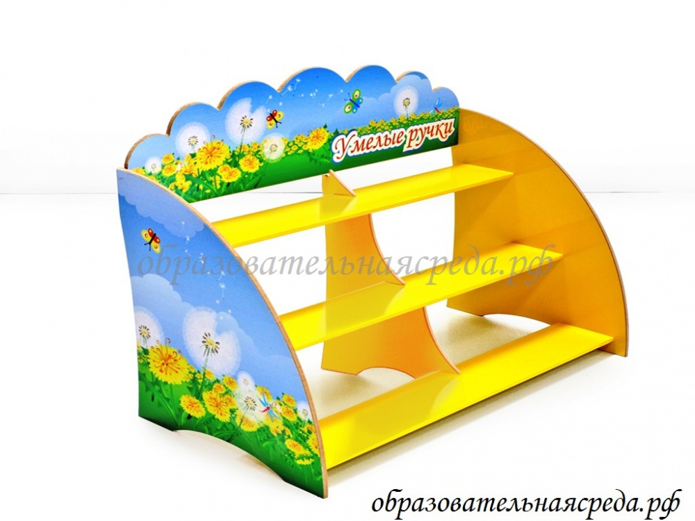 Полочка для лепки "Одуванчики" выполнена из МДФ и рассчитана на 35-40 работ. Высота полочки - 0,41м., ширина - 0,71м., глубина 0,28м.