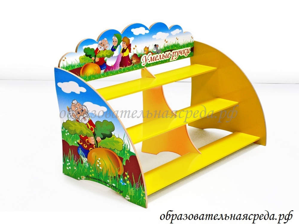 Полочка для лепки "Радуга" выполнена из МДФ и рассчитана на 35-40 работ. Высота полочки - 0,41м., ширина - 0,71м., глубина 0,28м.