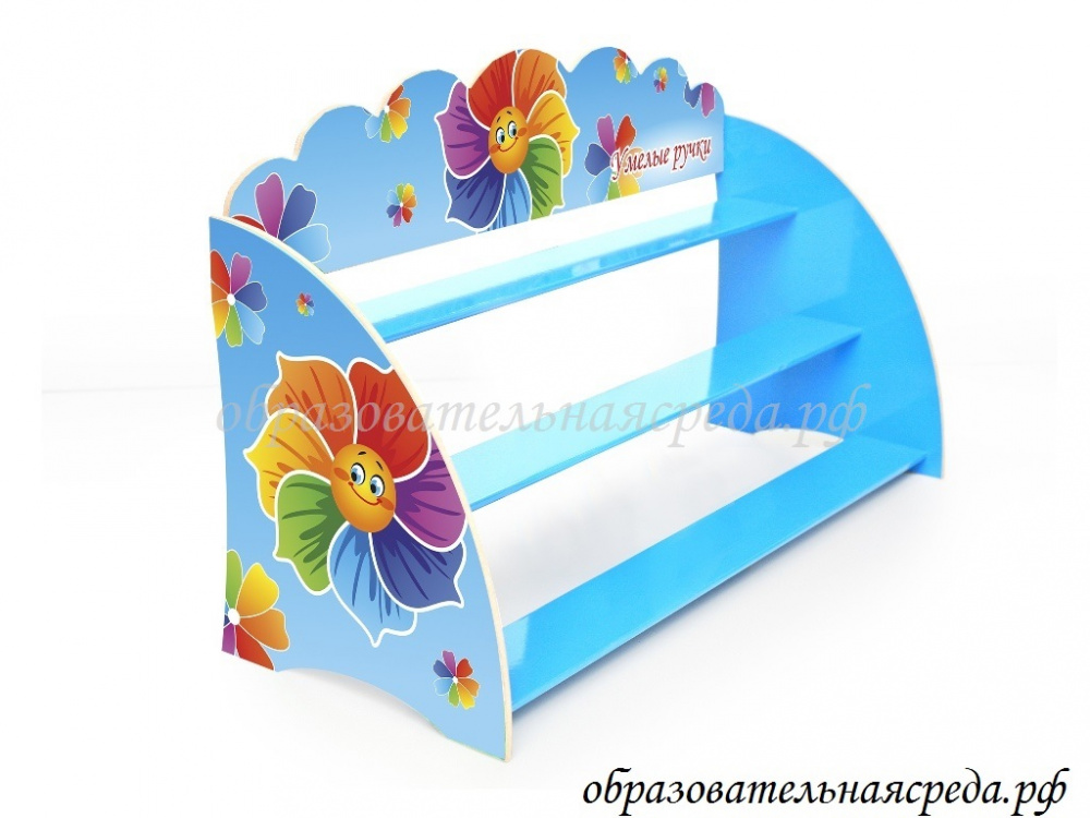 Полочка для лепки "Семицветик №1" выполнена из МДФ и рассчитана на 25-30 работ. Высота полочки - 0,41м., ширина - 0,51м., глубина 0,28м.