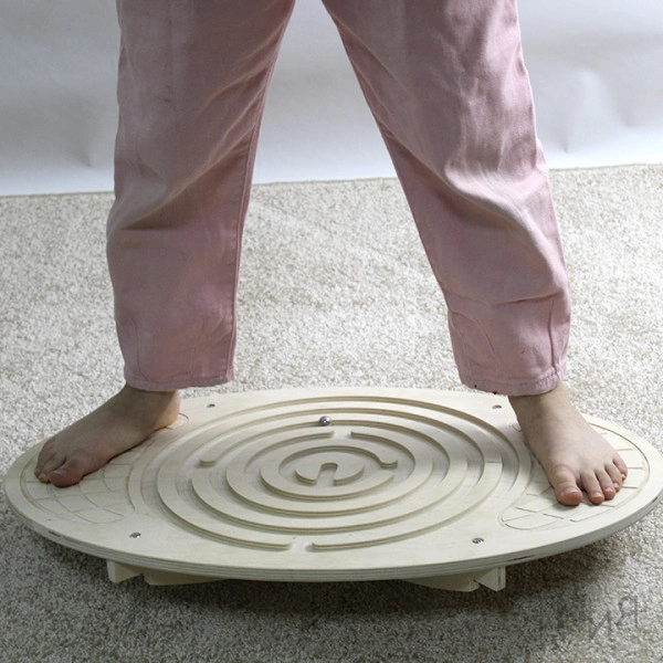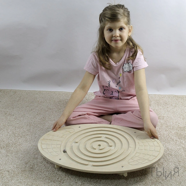4. Держа ребенка за руки, помогите встать на тренажер и пройдите несколько раз лабиринт вместе.