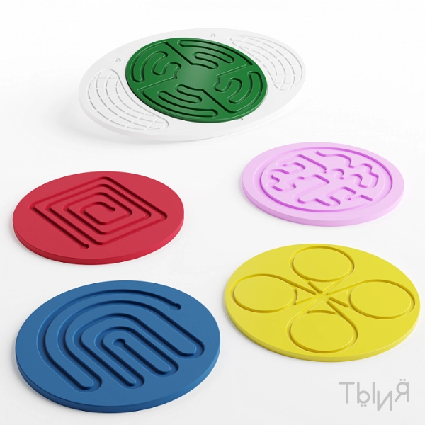 В комплекте балансира предусмотрены сразу 5 сменных лабиринтов для развития. Каждый из них имеет определенный уровень сложности, что позволяет настраивать тренировку под индивидуальные потребности и выстраивать гибкую систему занятий. Начните с легкого лабиринта и постепенно двигайтесь к более сложным.