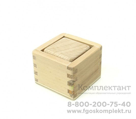 Одна из первых игрушек младенца, умеющего сидеть. Развивает моторику, координацию "глаз-рука", скоординированную работу обеими руками, мышление. Ребёнку необходимо перевернуть коробочку, чтобы вынуть кубик, и сориентировать правильно углы, чтобы поместить кубик в коробочку.
