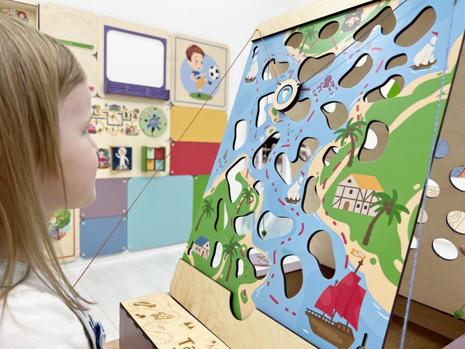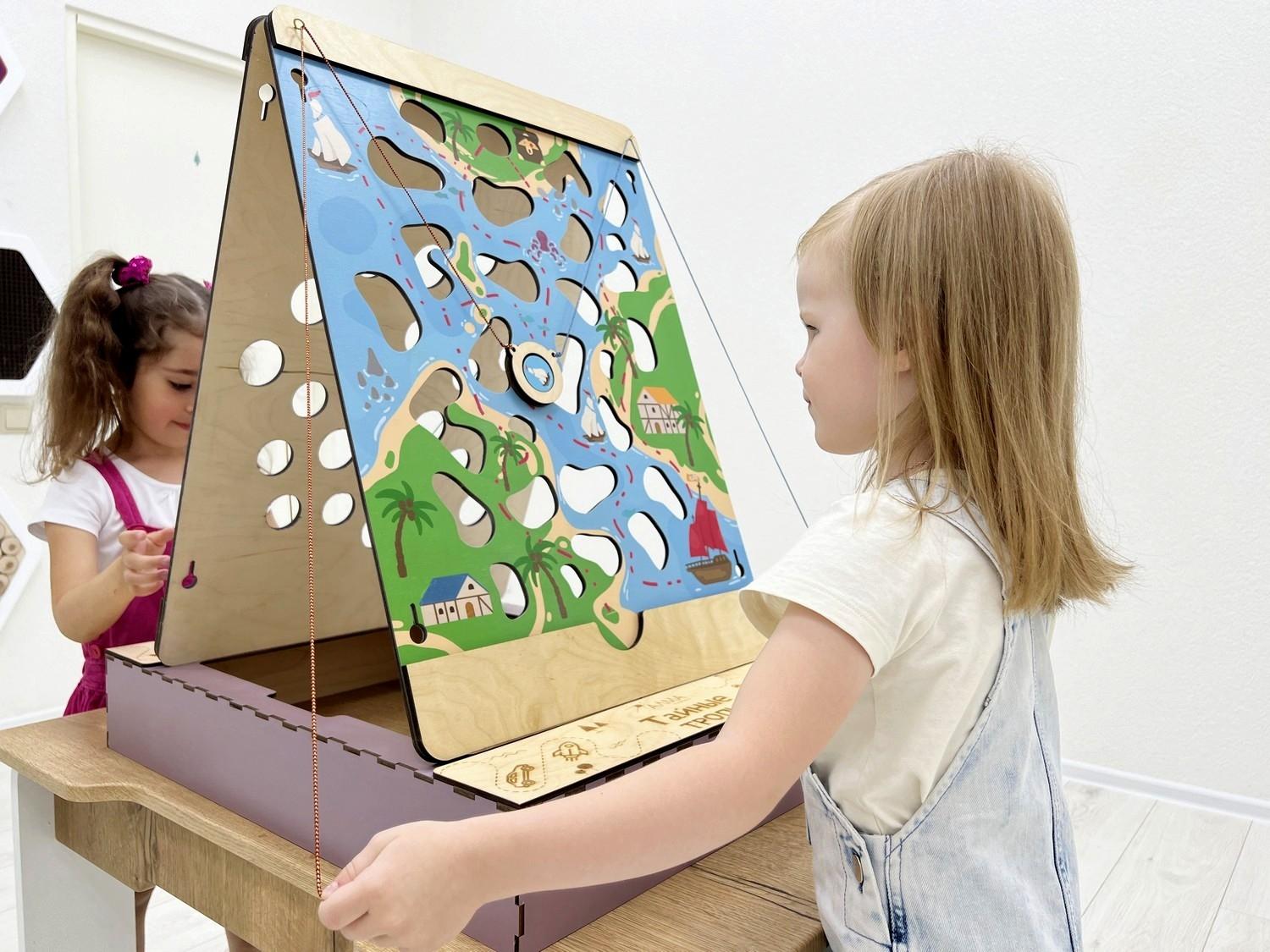 Обойти все препятствия-дыры очень непросто, для этого надо координировать работу сразу двух рук, что стимулирует нейронное взаимодействие больших полушарий головного мозга и связанные с ними высшие психические функции. Дети не только становятся более ловкими и внимательными, но и легче осваивают чтение, письмо, решение логических задач.