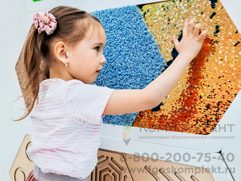 Это декоративные настенные модули, покрытые различными материалами и рельефами, для развития сенсорных систем малышей: зрения, осязания, слуха.