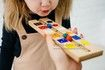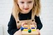 Натуральный материал тренажера поставит его на ступень выше, чем ненатуральные аналоги. Полезная игрушка может сопровождать ребенка в сад или школу и поможет устроить соревнования среди друзей. Данная модель оснащена единственным желобком и с различными нарисованными элементами по бокам, которые научат счету, напомнят названия основных цветов и геометрических фигур.