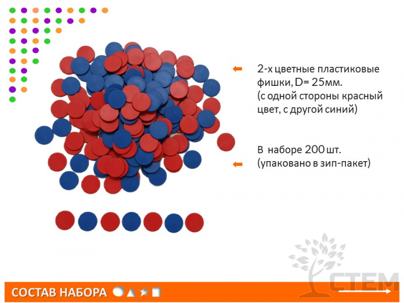 2-х цветные пластиковые фишки, диаметром 25мм.