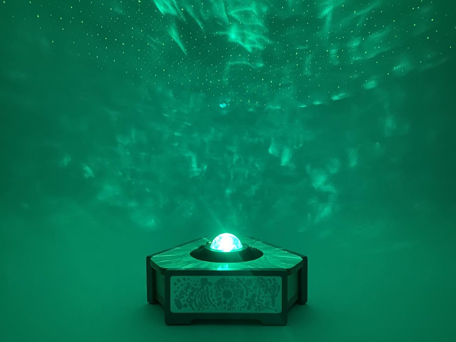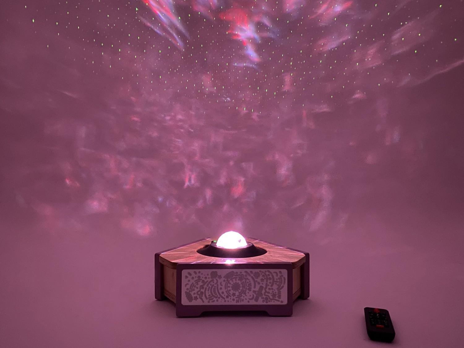 У проектора есть 10 режимов космических спецэффектов, которые можно переключать с пульта дистанционного управления. Яркость свечения настраивается в трёх разных режимах. Есть таймер автоматического отключения.