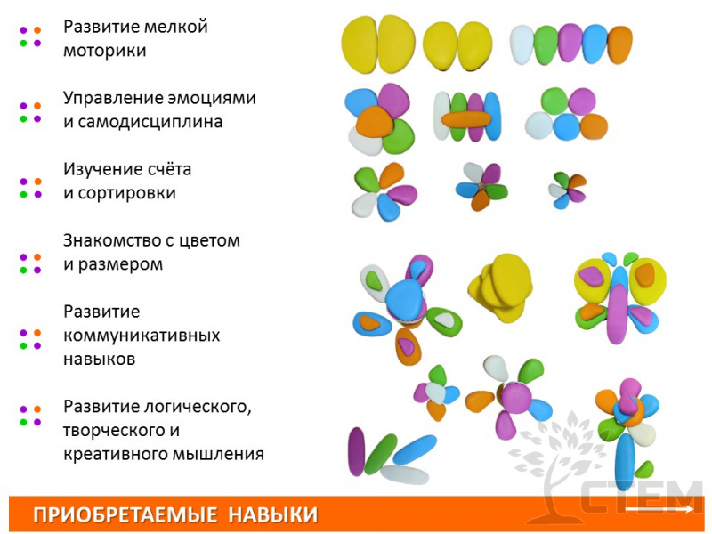 Набор "Радужные камешки Флюро-цвет" способствует сенсорному, социально-коммуникативному, познавательному, речевому и физическому развитию, а также оказывают положительное влияние и на психику ребенка. Знакомит с счетом, цветом, понятием размера и равновесия. Используется как для индивидуальных, так и для групповых занятий.