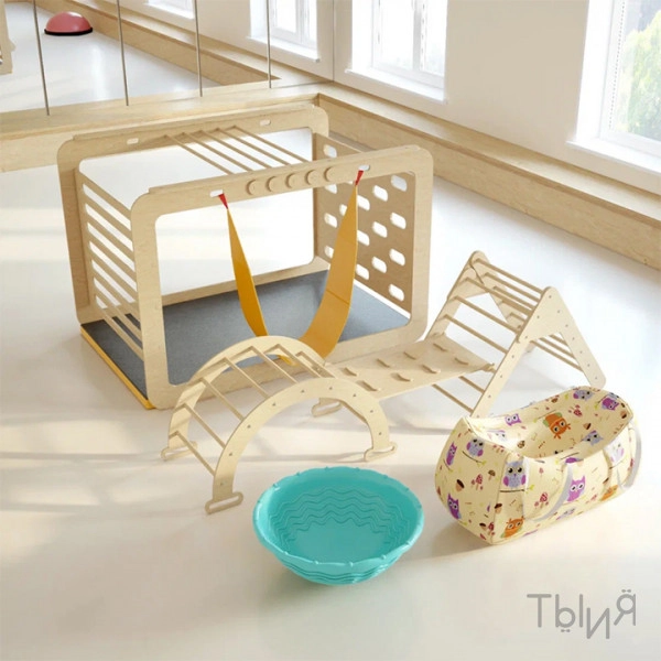 - Развитие моторных навыков: включенные элементы комплекса, такие как треугольник Пиклера и качель для сенсорной интеграции, способствуют развитию крупной и мелкой моторики, улучшая координацию и баланс у детей.