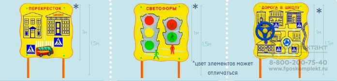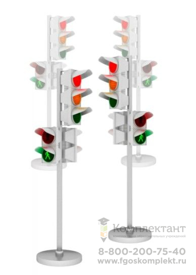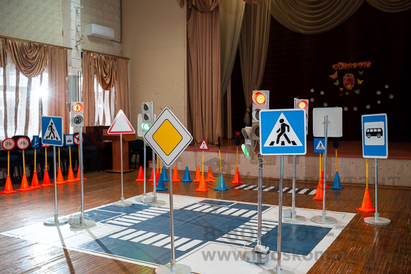 Комплектация: Набор светодиодных светофоров "Четырехсторонний перекресток" мобильный, Набор светодиодных светофоров "Пешеходный переход" мобильный, Светофор "ЖД переезд" мобильный , Знак дорожный типоразмер 40 на стойке , Имитация четырёхстороннего перекрестка, Учебно-игровой макет "Пост ДПС", Учебно-игровой макет "Заправка" АЗС, Бизи-стенд "Перекресток", Бизи-стенд "Дорога в школу", Учебно-игровой макет "Детский сад/Школа", Учебно-игровой макет "Больница", Учебно-игровой макет "Остановка"(мобильный/стационарный), Учебно-методический плакат "Правила безопасности для пешехода", Учебно-методический плакат "Дорожные знаки пешеходу", Учебно-методический плакат "Дорожные знаки водителю", Жезл регулировщика детский, Набор конусов сигнальных 33 см, Набор ролевых жилетов, Веломобили - 2 шт