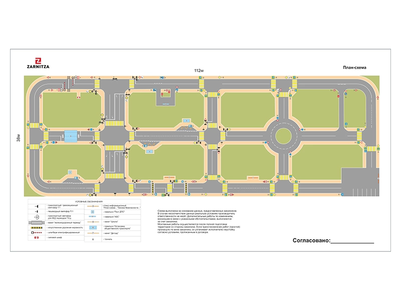 Детский автогородок со стационарным оборудованием 112 х 38 м