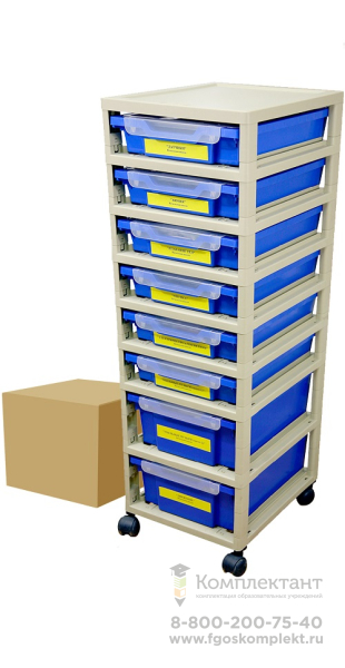 Для компактного размещения, хранения и транспортировки лотков с оборудованием в составе предусмотрена стойка на колесах для размещения одновременно 8 лотков.