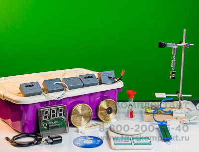Комплектность: измерительный блок – 1 шт., провод с USB-разъемом – 1 шт., адаптер для включения в сеть – 1 шт., диск с программным обеспечением – 1 шт., датчик массы (модуль «МАССА» – 1 шт., весы – 1 шт., провод (черный) – 1 шт.), датчик времени (модуль «ВРЕМЯ» – 1 шт., оптоэлектрические датчики – 2 шт., провода (белые) – 2 шт.), датчик температуры (модуль «ТЕМПЕРАТУРА» – 1 шт.), датчик атмосферного давления (модуль «АТМОСФЕРНОЕ ДАВЛЕНИЕ» – 1 шт.), датчик относительной влажности воздуха (модуль «ОТНОСИТЕЛЬНАЯ ВЛАЖНОСТЬ» – 1 шт.), штатив (основание 15*20*2,5 см – 1 шт., стержень 40 см с резьбой – 1 шт., муфты – 2 шт., лапка – 1 шт., стержень 15 см с площадкой – 1 шт.), чаша стеклянная – 1 шт., нить – 1 шт., палочки по 2,5 см – 20 шт., точки Ø 1 см – 20 шт., весы пружинные – 1 шт., термометр спиртовой – 1 шт., барометр-анероид – 1 шт., гигрометр – 1 шт., стаканы 100 мл – 2 шт., грузы по 50 г – 2 шт., грузы по 100 г – 2 шт., песочные часы – 1 шт., руководство по эксплуатации с методическими рекомендациями по проведению опытов – 1 шт.