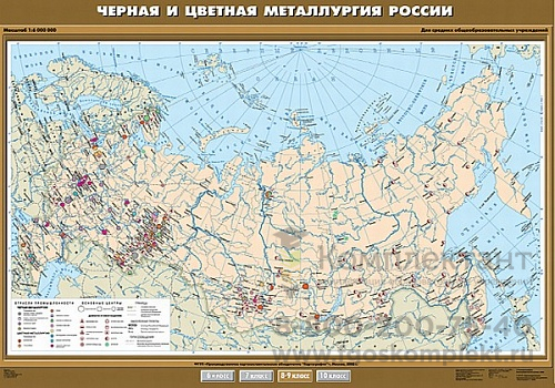 На карте кругами показаны основные центры черной и цветной металлургии с подразделением на крупнейшие, крупные и прочие важные. Внутри круга цветом показаны отрасли черной и цветной металлургии. Дополнительно на карте показаны места добычи, обогащения черных руд и цветных металлов.
