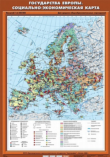 Государства Зарубежной Европы. Социально-экономическая карта, 70х100