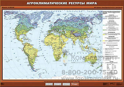 Учебн. карта "Агроклиматические ресурсы мира" 100х140