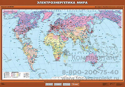 Учебн. карта "Электроэнергетика мира" 100х140