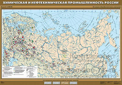 Учебн. карта "Химическая и нефтехимическая промышленность России" 100х140