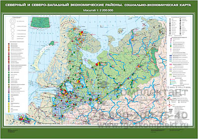 Учебн. карта "Северный и Северо-Западный экономические районы.Социально-экономическая карта" 100х140