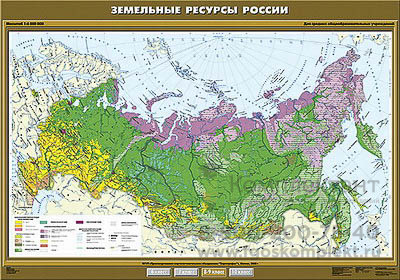 Масштаб 1:6000000, формат 140*100 см. На карте цветом показаны сельскохозяйственные угодья: обрабатываемые угодья, природные кормовые угодья, земли под болотами, слабоиспользуемые земли, а также зоны концентрации мелкоконтурных угодий различных видов. Зеленым кантом обозначены лесозащитные полосы, штриховкой – нарушенные земли. Односторонняя печать, двустороннее ламинирование, лицевая сторона покрыта матовым ламинатом.