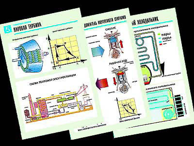 Комплект охватывает следующие темы: внутренняя энергия, работа газа, законы термодинамики, паровая машина Ползунова, паровая турбина, четырехтактный двигатель внутреннего сгорания, газотурбинный двигатель, компрессионный холодильник, ракетные двигатели, энергетика и энергетические ресурсы.