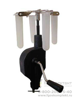 Прибор состоит из крестообразной пластины с вилками на концах. К вилкам подвешены на осях кольца с пластмассовыми полыми цилиндрами для вкладывания в них стеклянных пробирок. Пластина закреплена с помощью втулки на шпинделе центробежной машины. Передача вращательного движения от рукоятки к шпинделю осуществляется посредством червячной передачи. Отношение числа оборотов рукоятки к числу оборотов шпинделя 1:16.