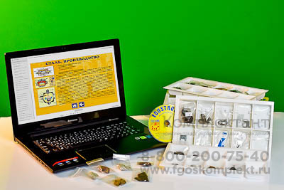 Комплектность: натуральные образцы (16 видов) – 64 шт., вкладыш информационный (2 вида) – 4 шт., интерактивное приложение на электронном носителе – 1 шт., руководство по эксплуатации – 1 шт.