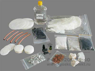 Комплектность: алюминий гранулированный - 0,05 кг, кальция карбид - 0,05 кг, кальция карбонат (мраморная крошка) - 0,5 кг, крахмал картофельный - 0,05 кг, медь - 0,05 кг, парафин - 0,5 кг, уголь активированный - 0,05 кг, горючее для спиртовок - 0,66 л, пробки резиновые - 15 шт., трубки резиновые - 5 шт., фильтры Ø 5,5 см (уп.) - 2 шт., фильтры Ø 12,5 см (уп.) - 1 шт.