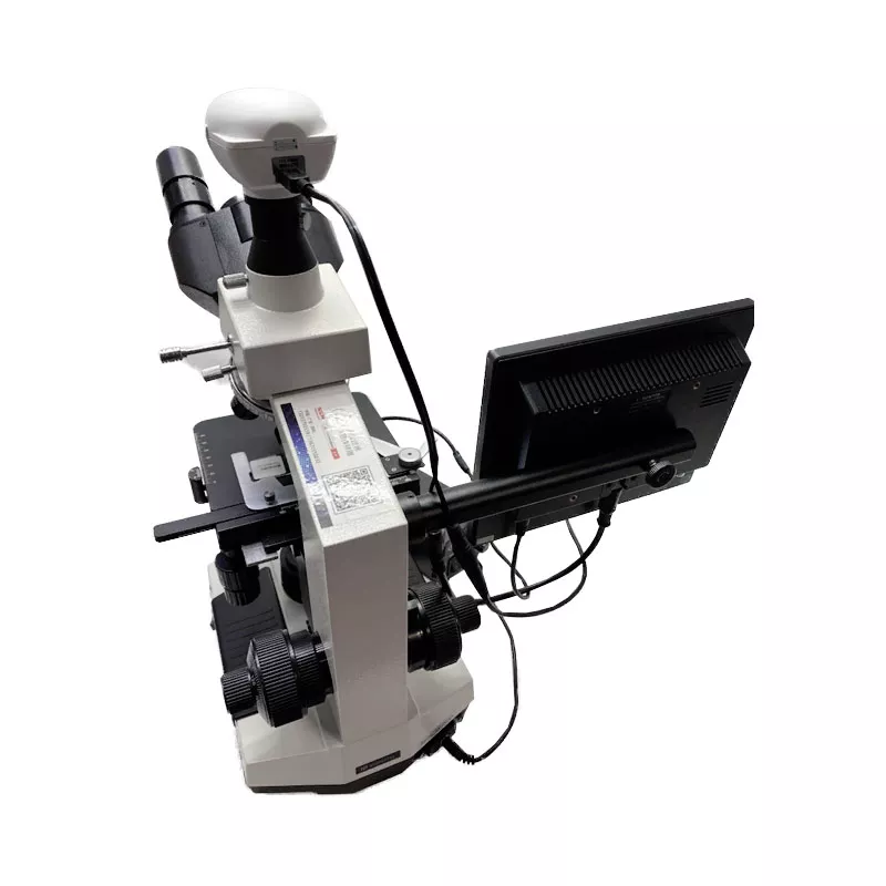 Оснащённый ахроматическими объективами (4x, 10x, 40x, 100x), тринокулярный микроскоп с камерой позволяет использовать одновременно три канала наблюдения: два окуляра и цифровую камеру. Это удобно для демонстрации, записи и сохранения результатов исследований. Камера Sony обеспечивает чёткое HD изображение, а 8-дюймовый монитор с разрешением 1024×768 позволяет легко анализировать данные в режиме реального времени.