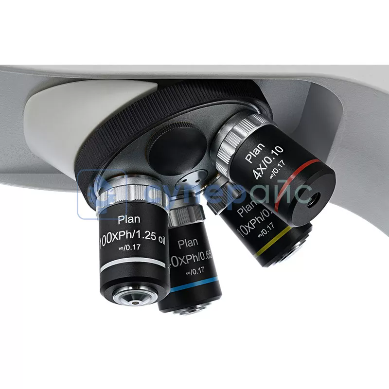 Объективы | фазовые планахроматические, скорректированные на бесконечность: 4 X, 10 X, 40 XS, 100 XS (масляный) |