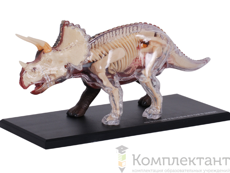 Анатомическая модель 4D Vision «Трицератопс» — это современный образовательный инструмент, который позволяет заглянуть в прошлое и детально изучить строение одного из самых узнаваемых динозавров. Данная модель, состоящая из 46 деталей для сборки, сочетает в себе высокую научную точность и интерактивный формат, что делает ее незаменимым наглядным пособием для оснащения кабинетов биологии и естествознания. Она предоставляет уникальную возможность не просто увидеть, но и самостоятельно исследовать анатомию доисторического ящера, вызывая живой интерес к палеонтологии и биологии.