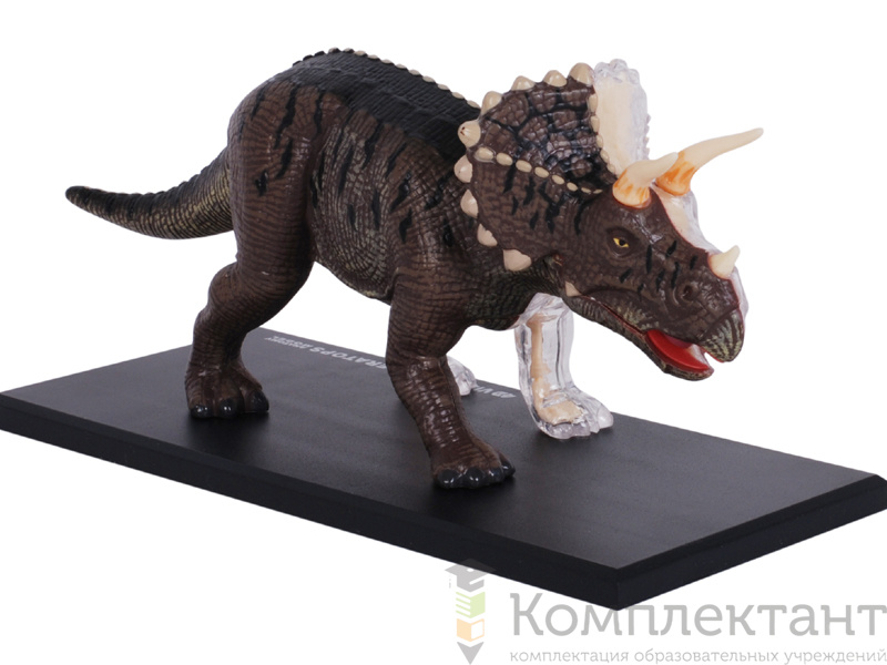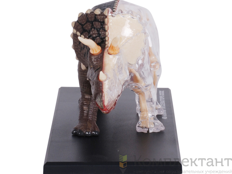 Конструкция модели продумана для максимального удобства использования в учебном процессе. Модель имеет полупрозрачный корпус, который позволяет рассмотреть внутреннее строение организма — расположение скелета и внутренних органов — без разборки . Все 46 деталей являются полностью съемными, что дает возможность изучать каждый орган или часть тела по отдельности, обеспечивая глубокое понимание анатомии . Модель отличается высокой детализацией: каждая часть анатомически точна и тщательно проработана, а многие элементы вручную раскрашены для достижения максимальной реалистичности . Для удобства демонстрации и хранения в комплект входит прочная подставка и иллюстрированное руководство по сборке, которое также содержит описания анатомии, информацию о жизненном цикле трицератопса, его пищевых привычках и размерах .
