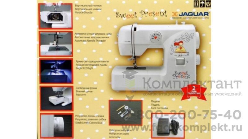 Швейная машина Jaguar Sweet Present - компактная и недорогая модель, которая без сомнений поможет Вам преобразить Ваш гардероб и не только!