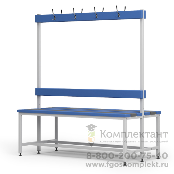 Очень прочные и долговечные скамейки для раздевалок без особых изысков. Все элементы отличаются надежностью, скамейки практичны и неприхотливы в эксплуатации. Сиденья скамеек изготовлены из пластика. Каркас изготовлен из стальной трубы 30*30 мм, окраска RAL 7035.