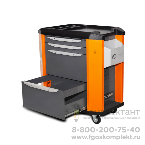 Каждый ящик тележки инструментальной имеет защиту от самопроизвольного выдвижения в виде механизма, фиксирующего ящик в положении «закрыт» с разблокированием с помощью ручной клавиши.