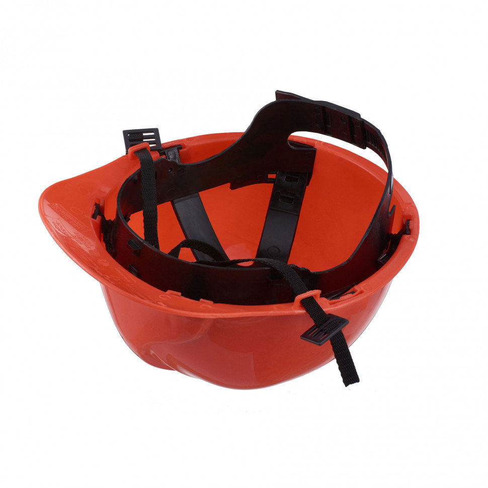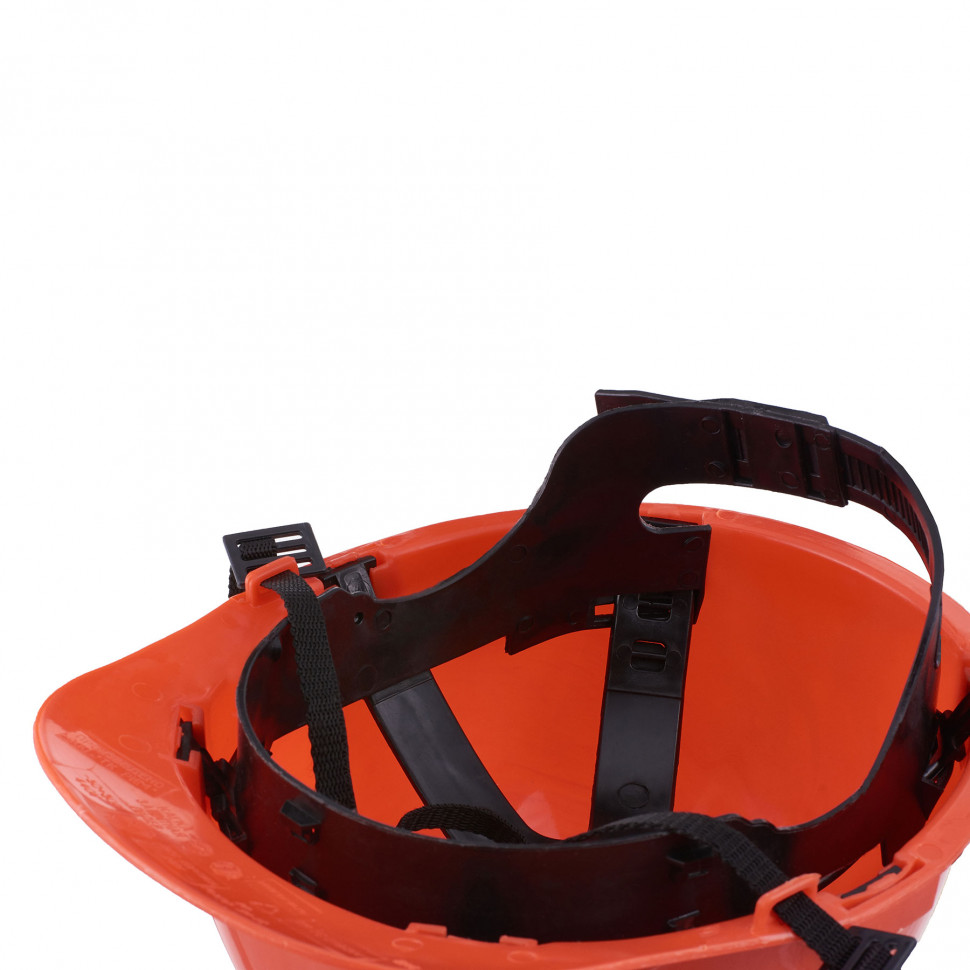 Каска оборудована карманами для крепления противошумных наушников или аналогичного по конструкции защитного экрана. В комплект поставки входит подбородочный ремень, улучшающий фиксацию защитной каски на голове.