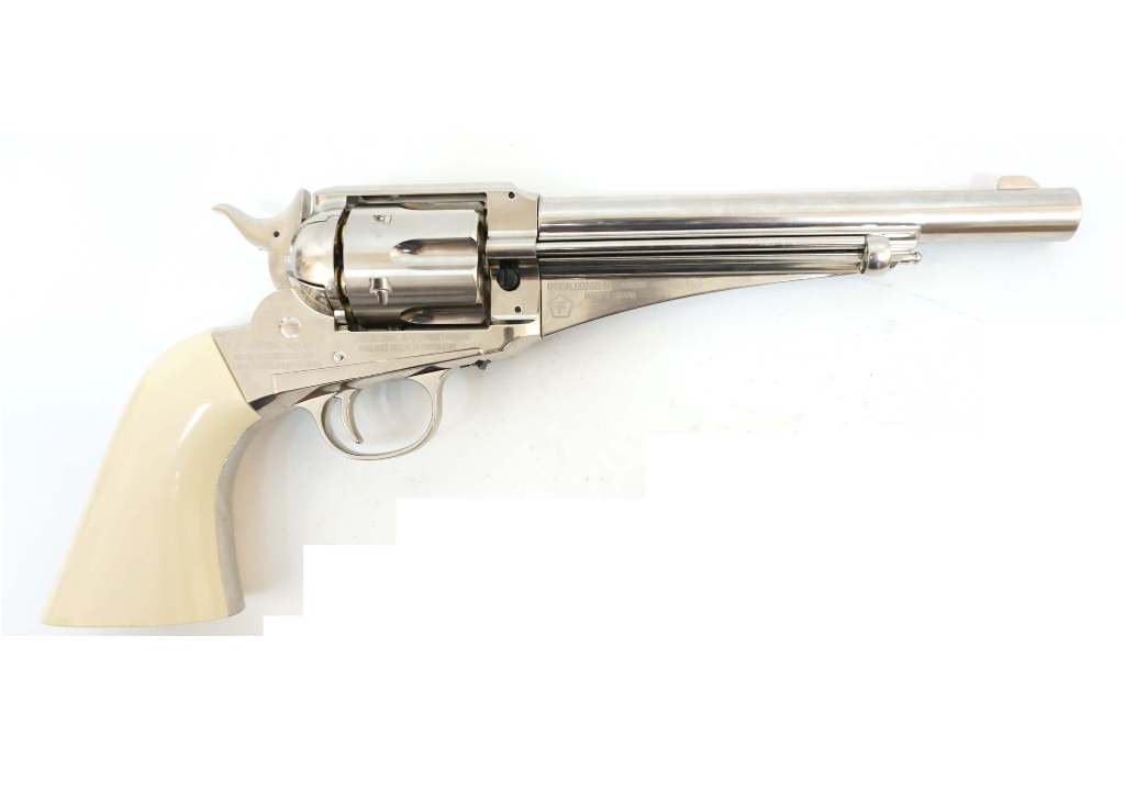 Пневматический револьвер оснащен функциональными патронами, загрузочным воротами и экстрактором, что создает функциональность, аналогичную фактическому огнестрельному оружию 1875 года.