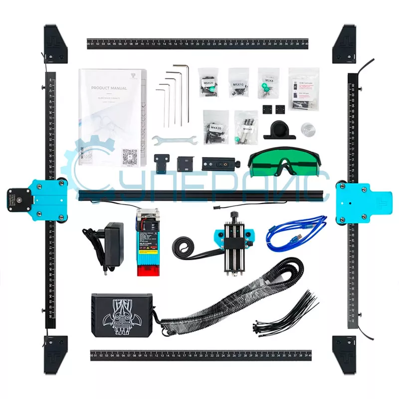 левая рамка по оси Y – 1 шт правая рамка по оси Y – 1 шт передняя рамка по оси X – 1 шт задняя рамка по оси X– 1 шт модуль натяжитель – 1 шт лазерная головка – 1 шт материнская плата с проводами – 1 шт каретка с подвижным модулем – 1 шт балка по оси X – 1 шт держатель – 1 шт угловой держатель – 1 шт набор инструментов – 1 шт винт М5*20 – 8 шт винт М4*20 – 10 шт винт М5*10 – 4 шт М4*45 – 3 шт М3*8– 4 шт очки– 1 шт источник питания – 1 шт USB кабель – 1 шт деревянная платформа – 1 шт крафт-картон– 1 шт подставка для ног – 4 шт |