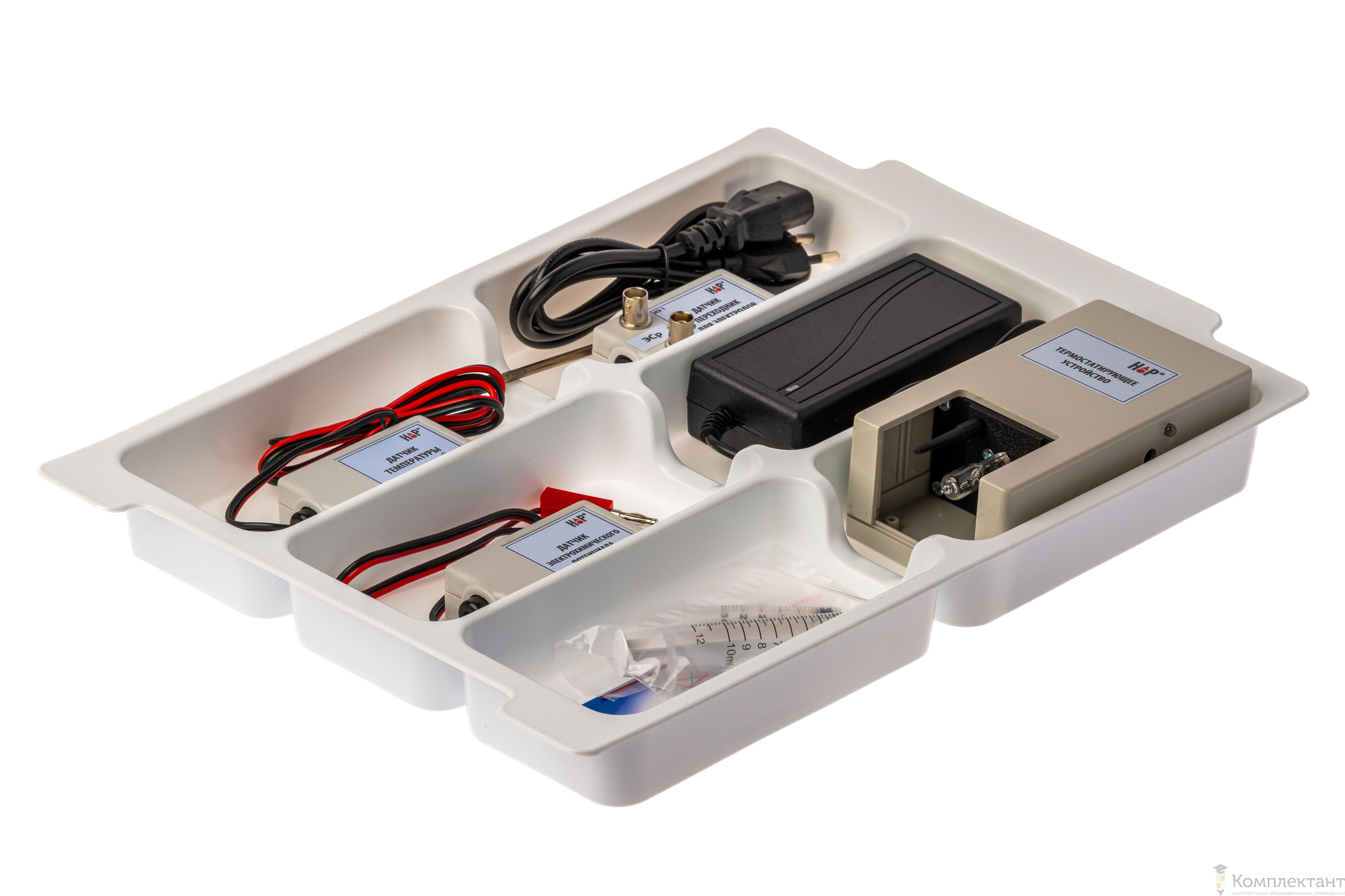 Цифровая лаборатория укомплектована в пластиковую систему хранения, которая закрывается прозрачной пластиковой крышкой на защелках для обеспечения наблюдения за содержимым. Комплект оборудования и датчики в системе хранения располагаются на ложементах.