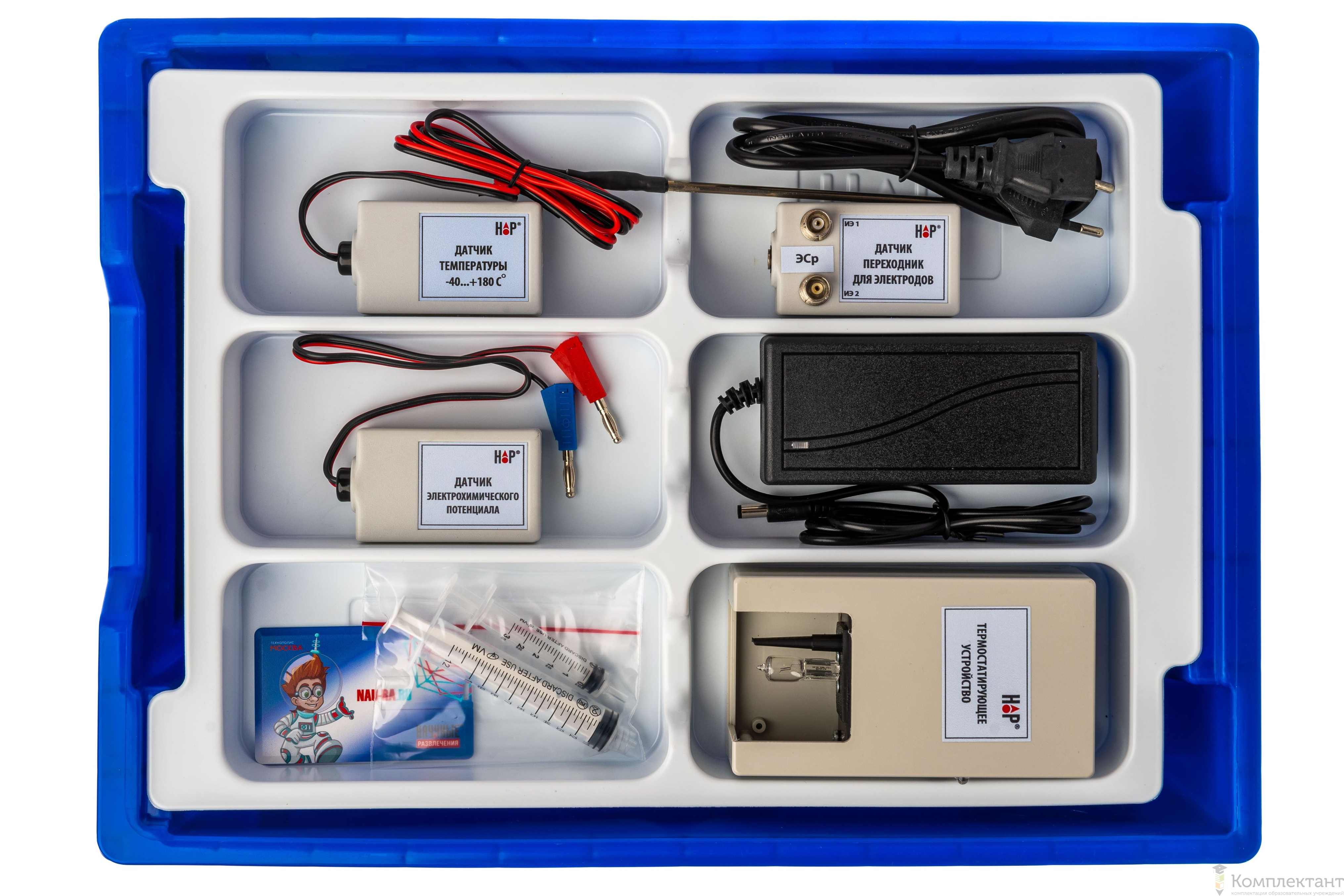 Цифровая лаборатория по химии – это комплект датчиков, на базе которых поочередно выполняются работы по измерению параметров окружающей среды и набор учебного оборудования, необходимого для выполнения химических опытов.